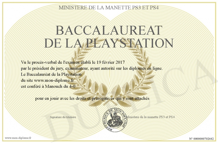Envoyez par email votre Baccalauréat de la Playstation personalisé