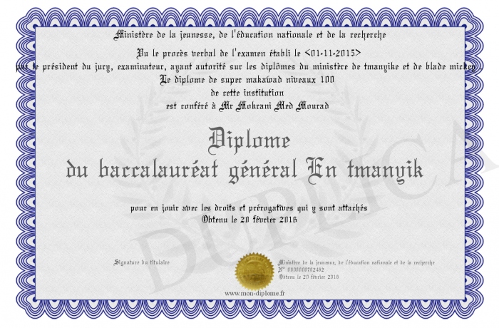 Envoyez par email votre Diplôme du baccalauréat général En tmanyik personalisé
