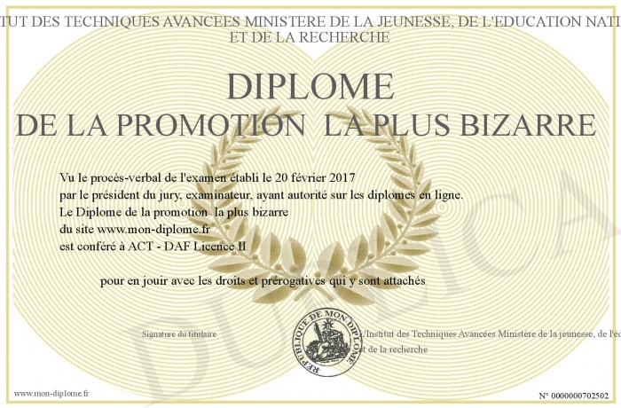Envoyez par email votre Diplôme de la promotion la plus bizarre personalisé