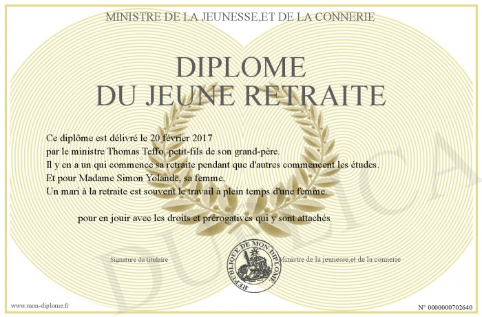 Envoyez par email votre Diplôme du jeune retraité personalisé