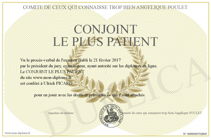 Envoyez par email votre CONJOINT LE PLUS PATIENT personalisé