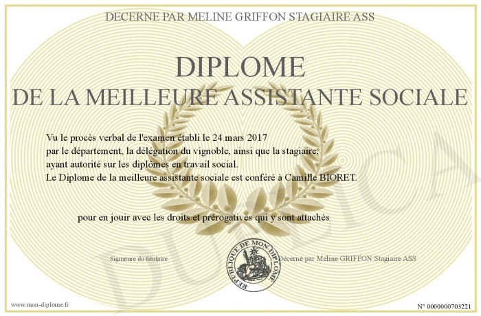 Envoyez par email votre Diplôme de la meilleure assistante sociale personalisé