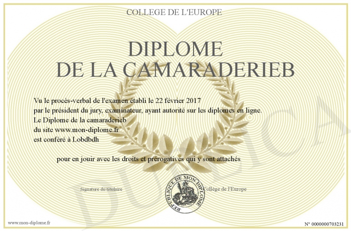 Envoyez par email votre Diplôme de la camaraderieb personalisé