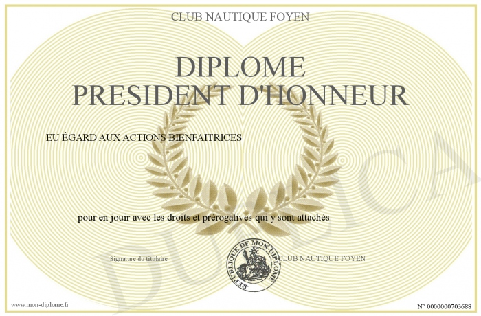 Envoyez par email votre Diplôme PRESIDENT D'HONNEUR personalisé