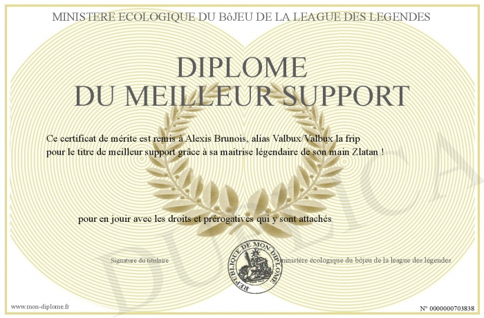 Envoyez par email votre Diplôme du Meilleur Support personalisé