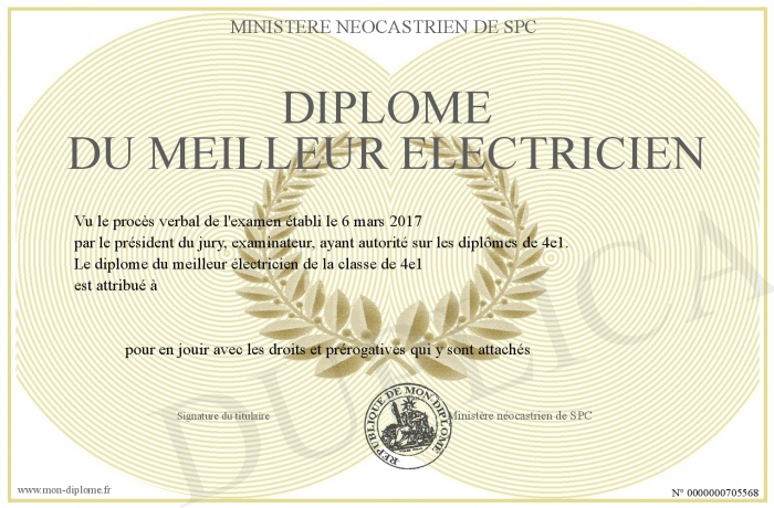 Envoyez par email votre diplôme du meilleur électricien personalisé
