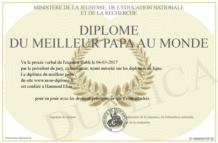 Envoyez par email votre Diplôme du meilleur papa au monde personalisé