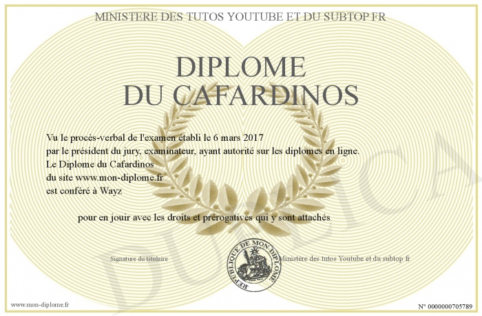 Envoyez par email votre Diplôme du Cafardinos personalisé