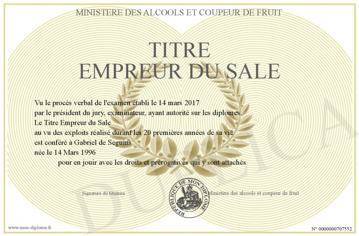 Envoyez par email votre Titre Empreur du Sale personalisé