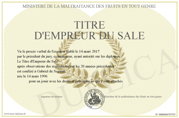 Envoyez par email votre Titre d'Empreur du Sale personalisé