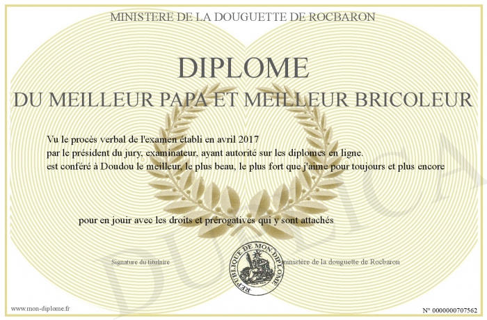 Envoyez par email votre Diplôme du meilleur papa et meilleur bricoleur personalisé