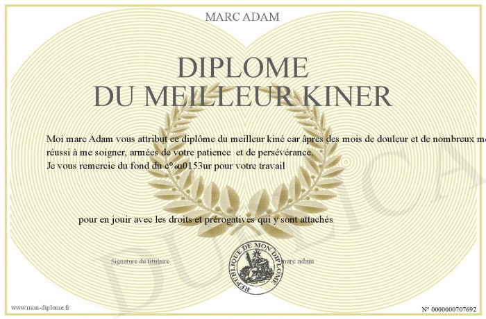 Envoyez par email votre Diplôme du meilleur kiner personalisé