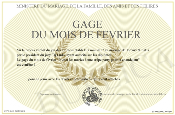 Envoyez par email votre Gage du mois de février personalisé