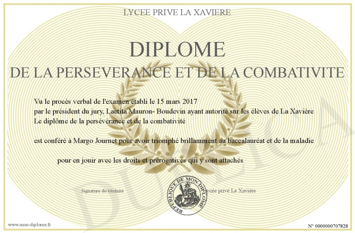 Envoyez par email votre Diplôme de la persévérance et de la combativité personalisé