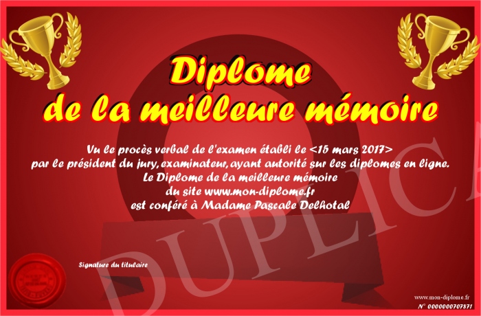 Envoyez par email votre Diplôme de la meilleure mémoire personalisé
