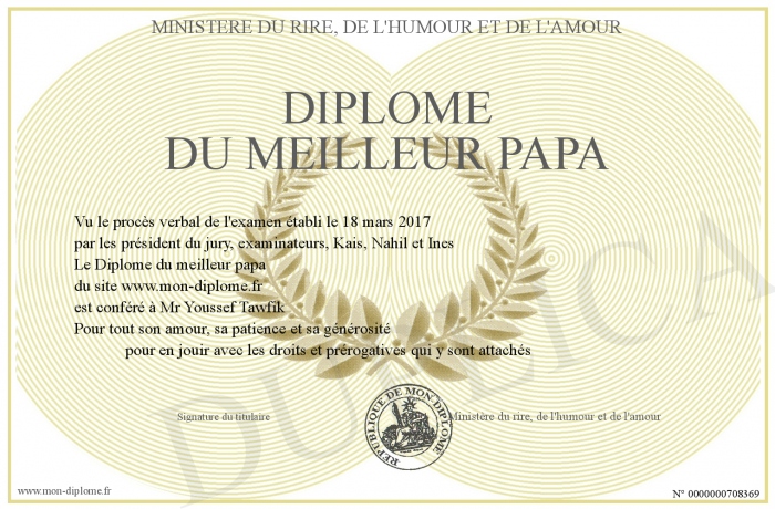 Envoyez par email votre Diplôme du meilleur papa personalisé