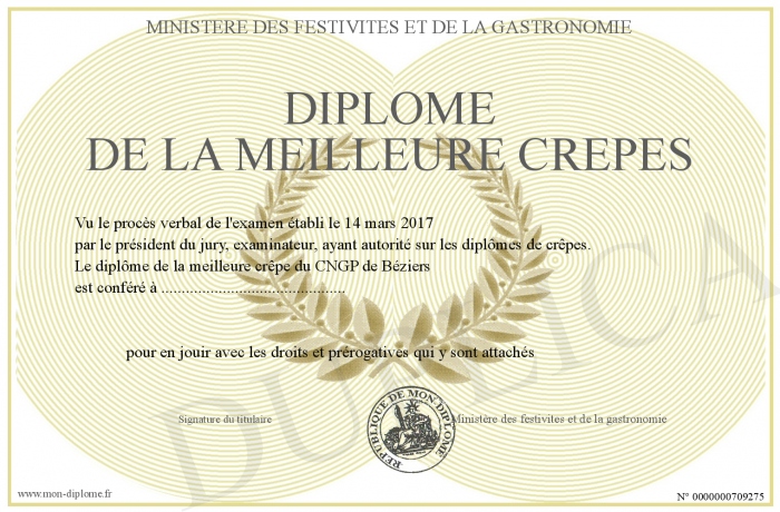 Envoyez par email votre Diplôme de la meilleure crepes personalisé