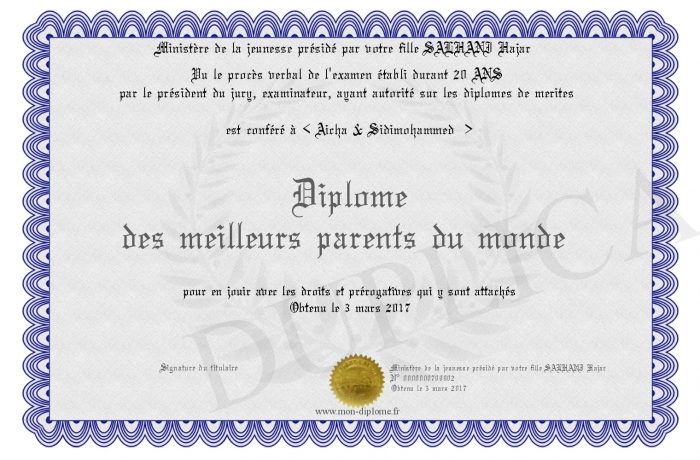 Envoyez par email votre Diplôme des meilleurs parents du monde personalisé
