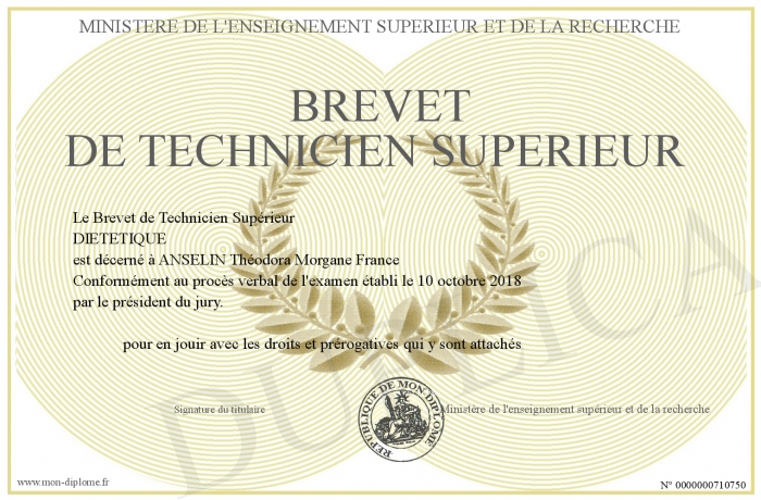Envoyez par email votre Brevet de Technicien Supérieur personalisé
