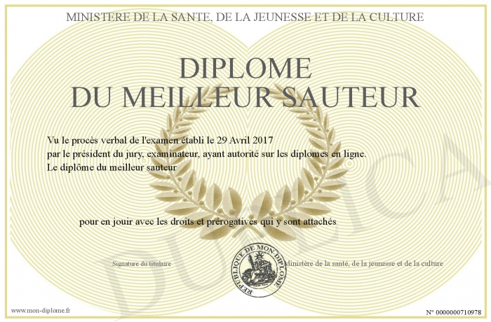 Envoyez par email votre Diplôme du meilleur sauteur personalisé