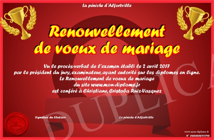 Envoyez par email votre Renouvellement de voeux de mariage personalisé