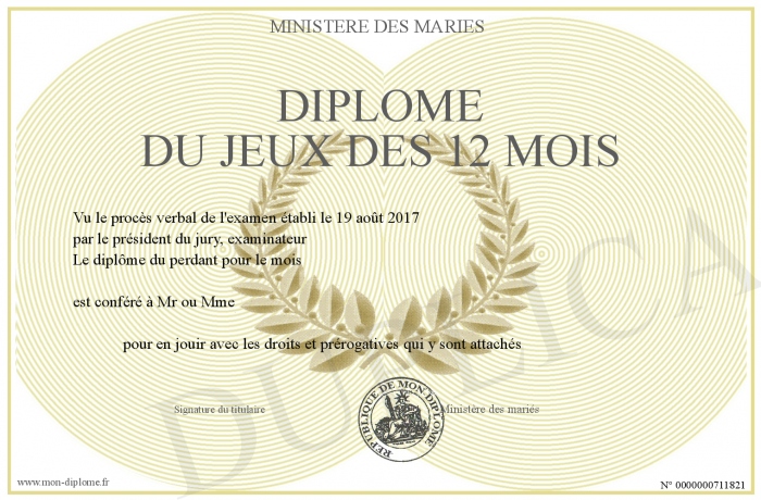 Envoyez par email votre Diplôme du jeux des 12 mois personalisé