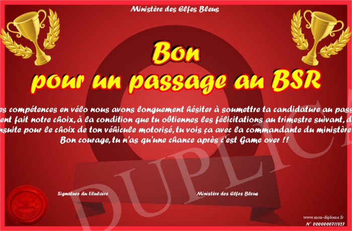 Envoyez par email votre Bon pour un passage au BSR personalisé