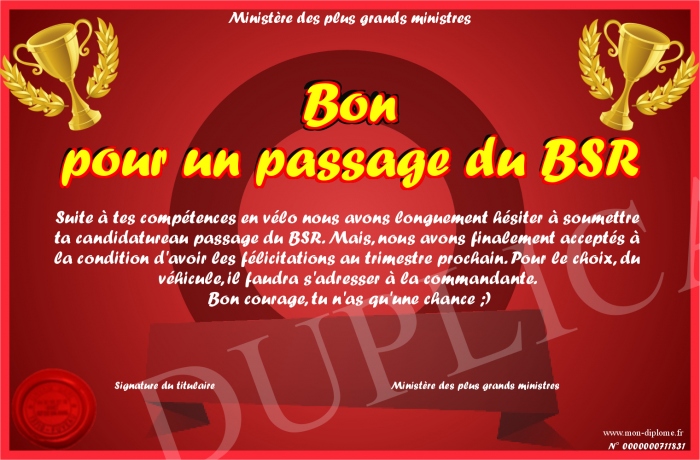 Envoyez par email votre Bon pour un passage du BSR personalisé