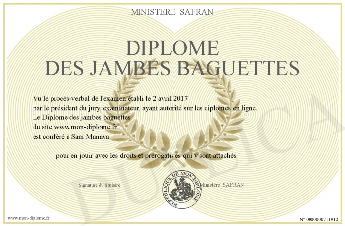 Envoyez par email votre Diplôme des jambes baguettes personalisé