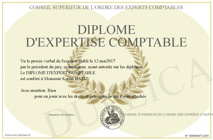 Envoyez par email votre DIPLOME D'EXPERTISE COMPTABLE personalisé