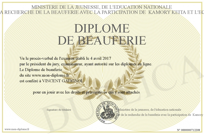 Envoyez par email votre Diplôme de beauferie personalisé