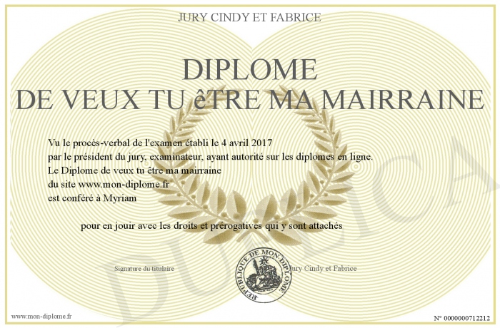 Envoyez par email votre Diplôme de veux tu être ma mairraine personalisé