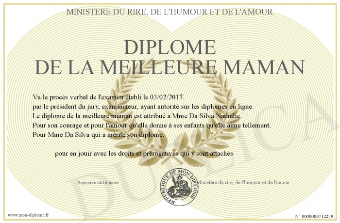 Envoyez par email votre Diplome de la meilleure Maman personalisé