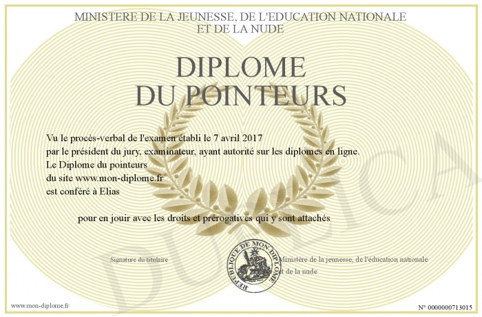 Envoyez par email votre Diplôme du pointeurs personalisé
