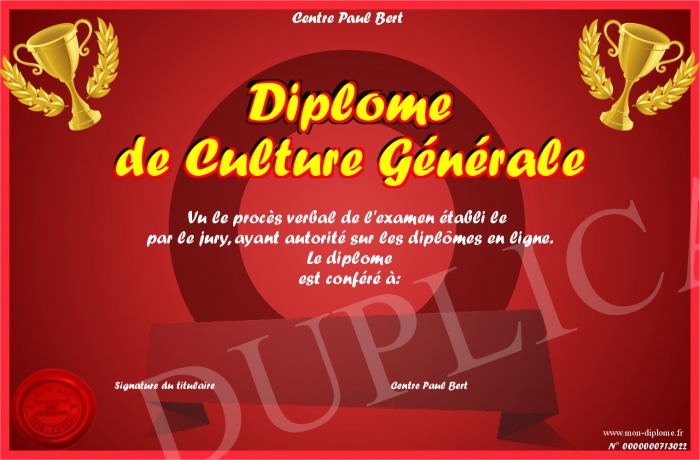 Envoyez par email votre Diplôme de Culture Générale personalisé