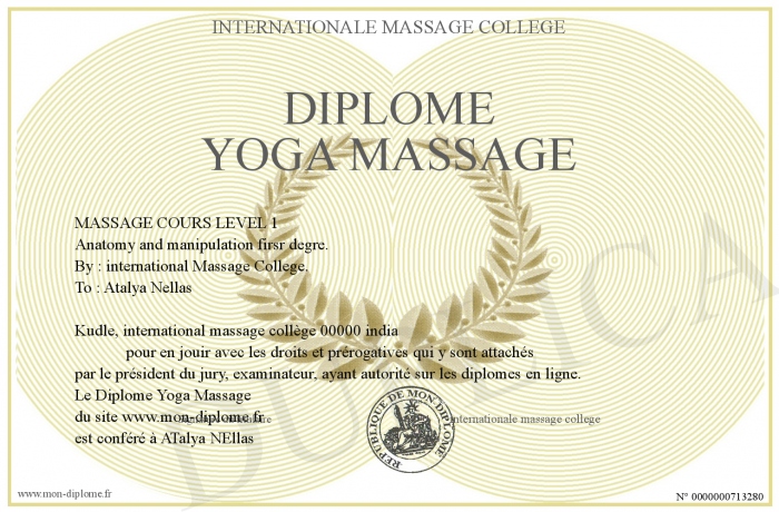 Envoyez par email votre Diplôme Yoga Massage personalisé