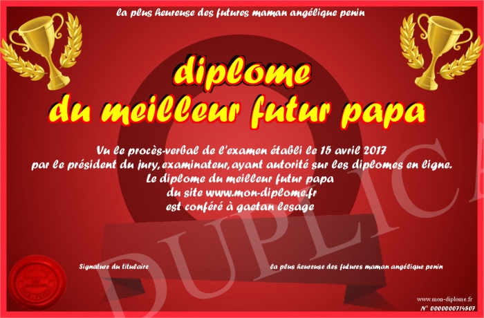 Envoyez par email votre diplome du meilleur futur papa personalisé