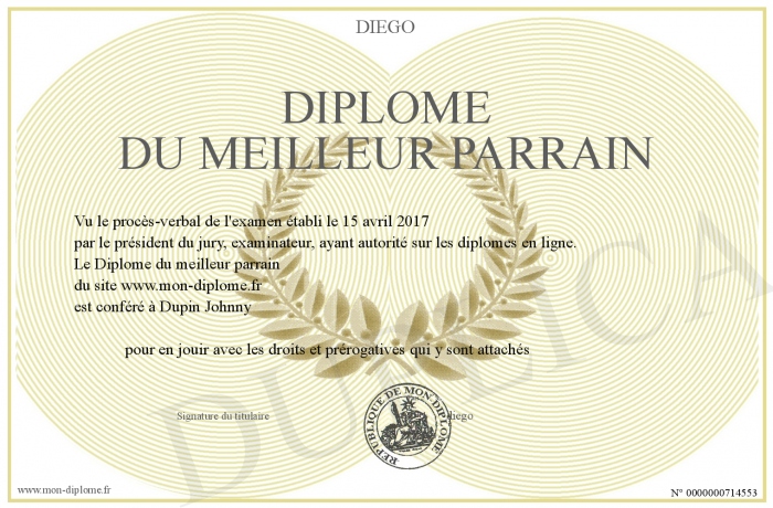 Envoyez par email votre Diplôme du meilleur parrain personalisé