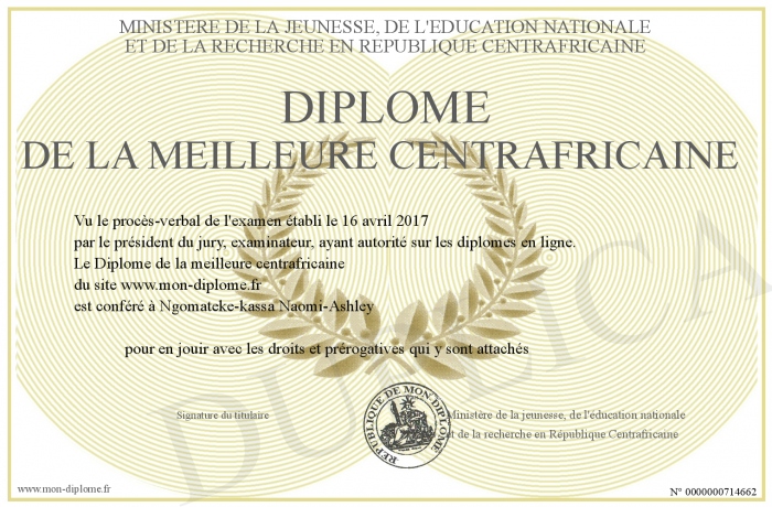 Envoyez par email votre Diplôme de la meilleure centrafricaine personalisé