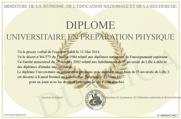 Envoyez par email votre Diplôme Universitaire en Preparation Physique personalisé
