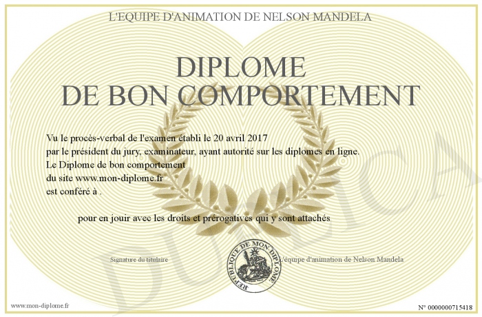 Envoyez par email votre Diplôme de bon comportement personalisé