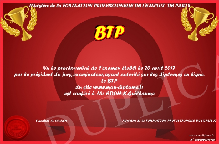 Achetez ce diplome sous forme de NFT !!