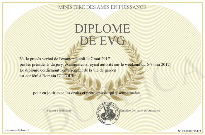 Envoyez par email votre Diplôme de EVG personalisé