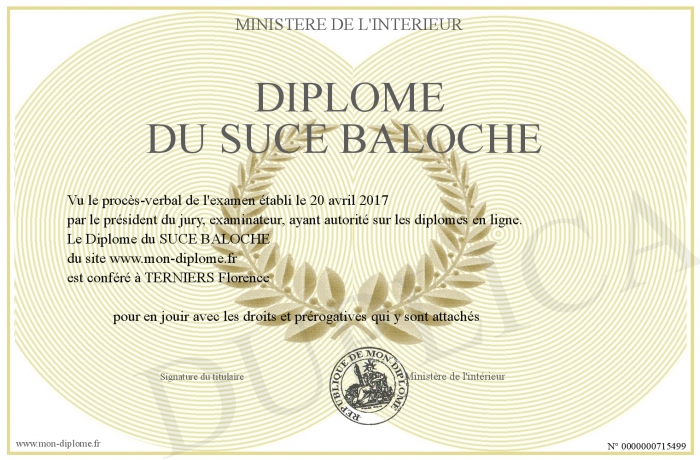 Envoyez par email votre Diplôme du SUCE BALOCHE personalisé