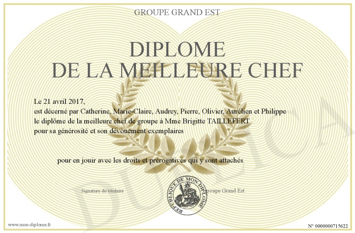 Envoyez par email votre diplôme de la meilleure chef personalisé