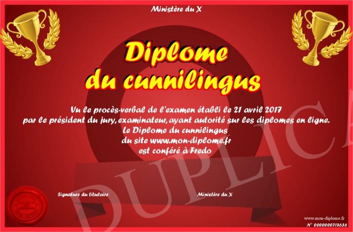Envoyez par email votre Diplôme du cunnilingus personalisé