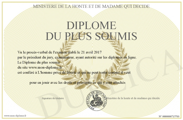 Envoyez par email votre Diplôme du plus soumis personalisé