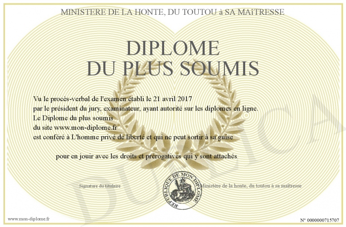 Envoyez par email votre Diplôme du plus soumis personalisé