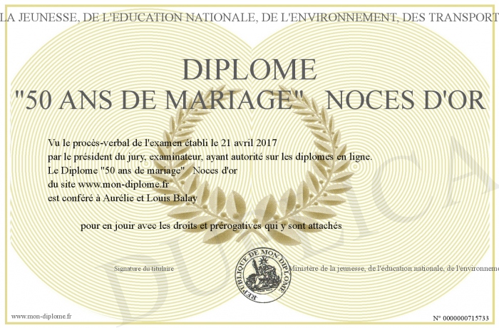 Envoyez par email votre Diplôme -50 ans de mariage- Noces d'or personalisé