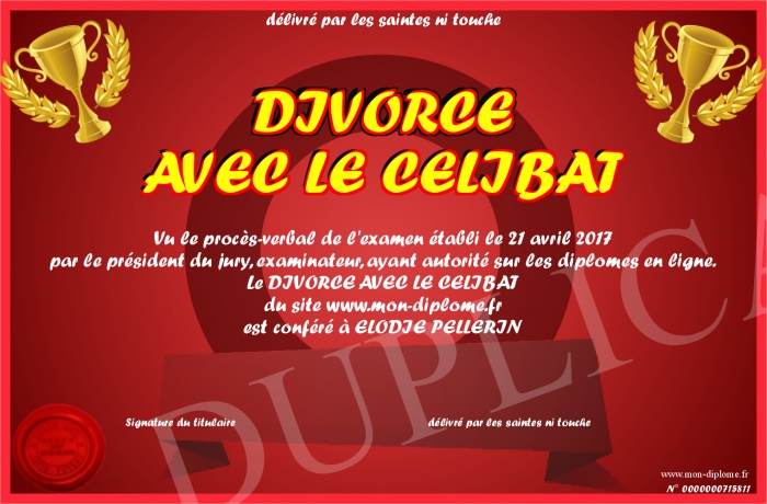 Envoyez par email votre DIVORCE AVEC LE CELIBAT personalisé